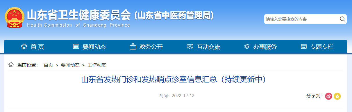 山东省发热门诊和发热哨点诊室信息汇总(持续更新中)