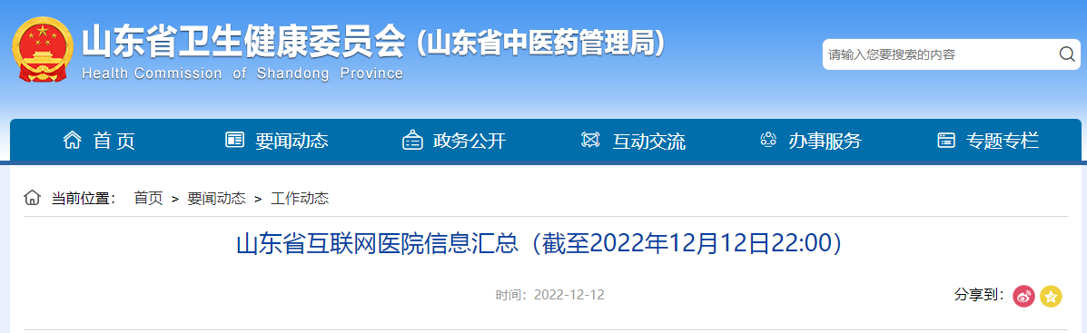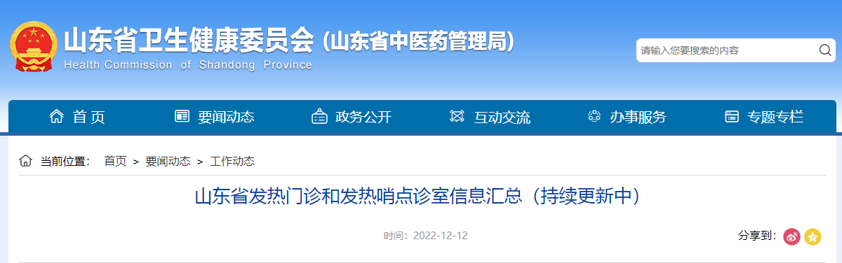 山东省二级以上医疗机构开设发热门诊机构名单(截至2022年12月12日21:00)