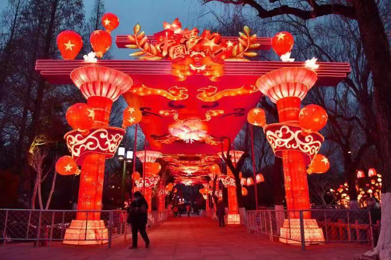 本届花灯会以“赞伟大时代,谱光影华章”为主题,划分为三大版块,共设置57组灯组。
