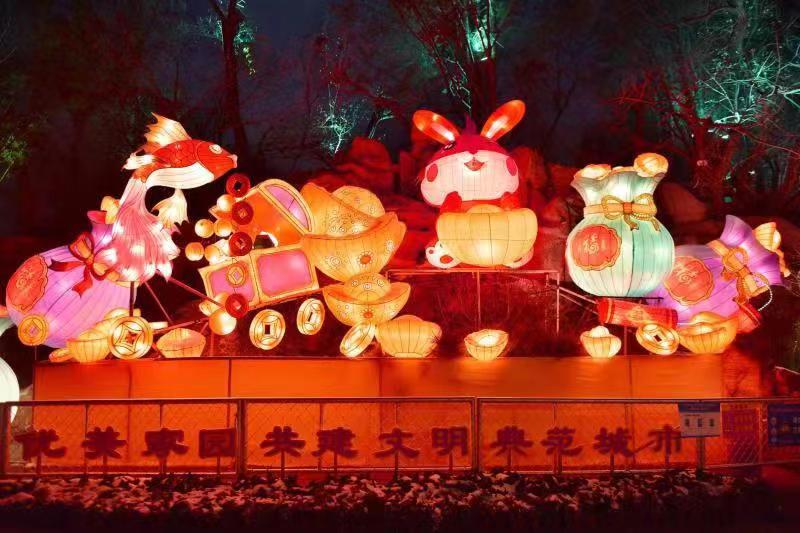 惟妙惟肖的兔子、绚丽多彩的花灯、韵味十足的花灯长廊……不同样式的花灯相映成趣,堪称视觉盛宴。与往届相比,本届花灯会由来自“花灯之乡”四川自贡的团队制作,工艺精良、制作精细。花灯会的灯组秉持着匠心传承的原则,突出新年新气象,展现景区新面貌。