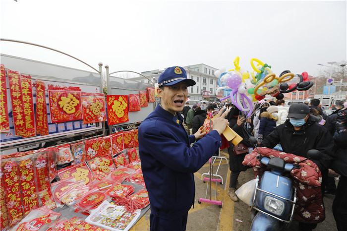 新春走基层|山东:消防宣传“进集市” 烟火味中话安全