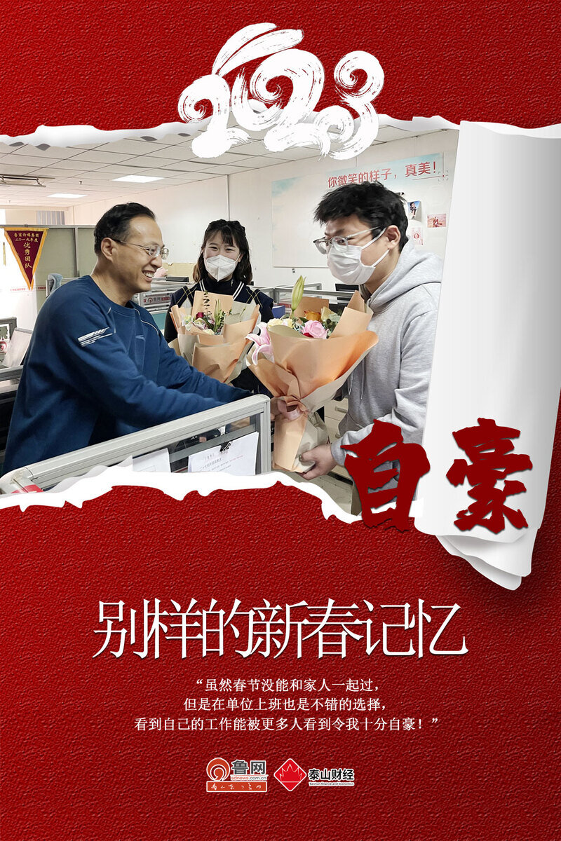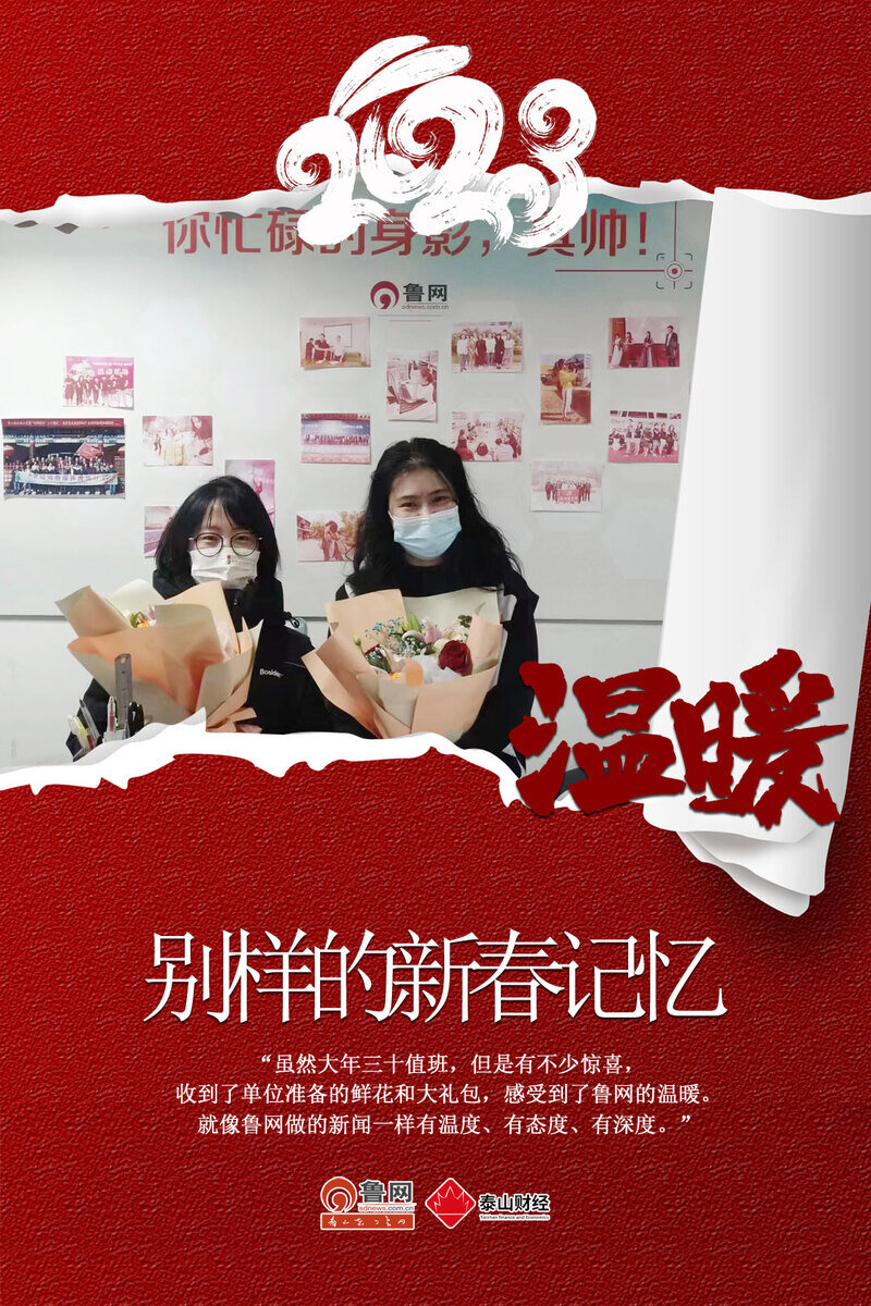 “虽然大年三十值班,但是有不少惊喜,收到了单位准备的鲜花和大礼包,感受到了鲁网的温暖。就像鲁网做的新闻一样 有温度 有态度 有深度。”
