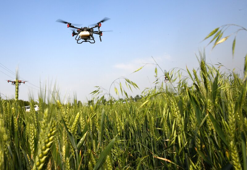 ——在菏泽郓城的大片土地上,植保无人机正灵活轻巧地喷洒农药。共享植保无人机技术服务站,让乡亲们可以改变背着喷雾器打药的劳动方式,省时省力。
