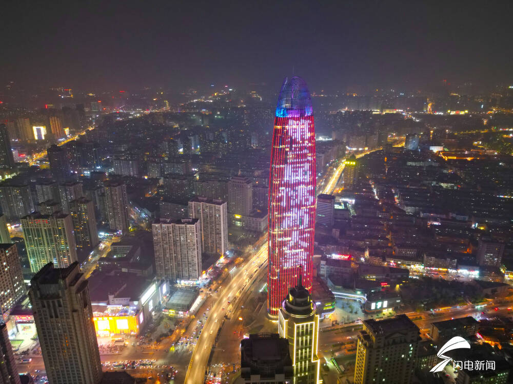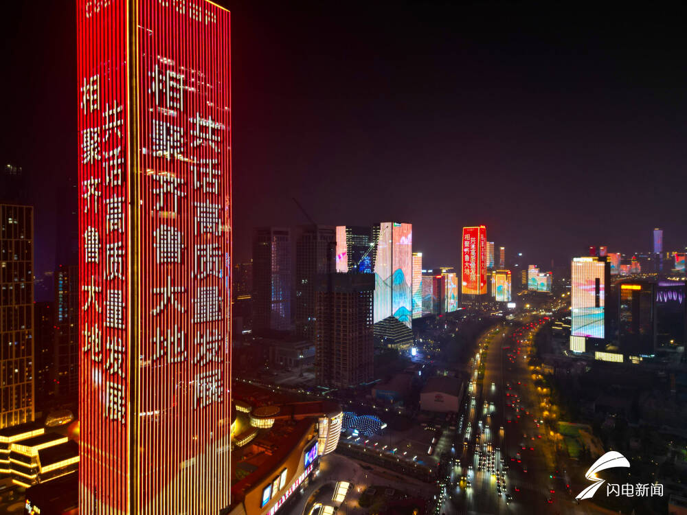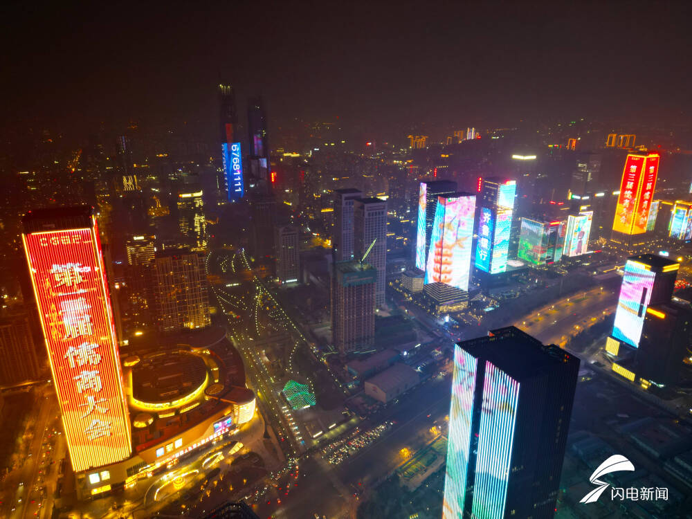 儒商大会灯光秀从3月27日持续到30日,从空中俯瞰济南经十路、绿地中心灯火璀璨,铺展出一幅火树银花不夜天的现代化都市夜景。华灯下的济南,人流如织、车流如梭,处处展现出城市活力与魅力。