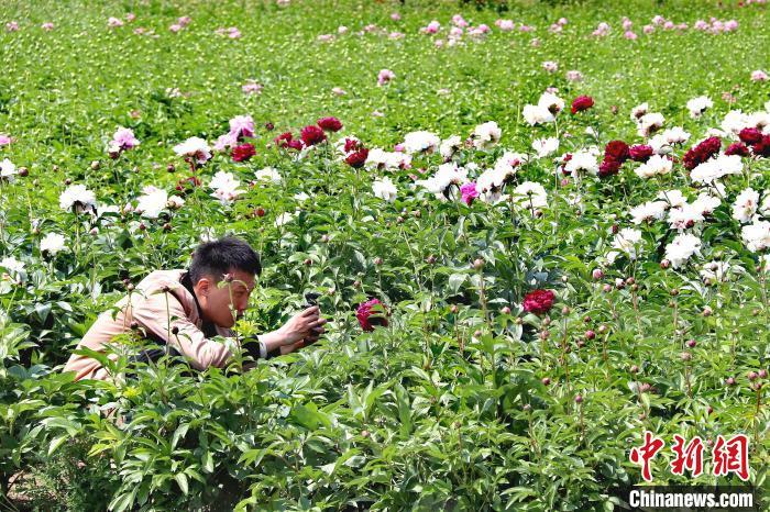 当前,菏泽牡丹区种植的芍药进入盛放期,吸引游客前来欣赏。“我和朋友们特意开车过来看芍药花,拍了许多美丽的照片,希望明年我们还能来到这里,赴一场花神之约。”5月5日,在山东省菏泽市牡丹区吴店镇芍药种植基地,游客李华告诉记者。