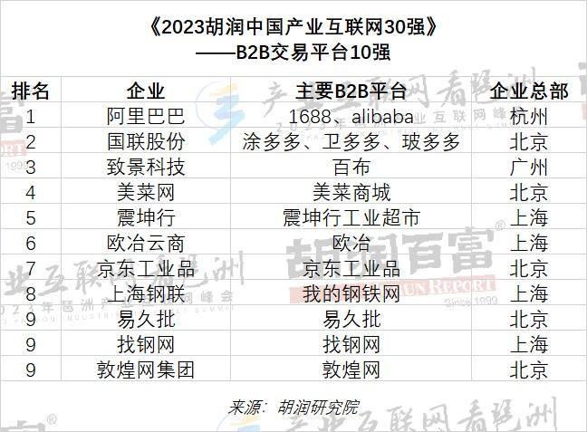 胡润研究院发布“产业互联网30强”,2家鲁企入选