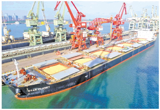 □记者孙源泽 报道 近日,满载近6.9万吨巴西玉米的“星战”轮在山东港口日照港靠泊接卸。这是山东口岸首次进口巴西玉米。