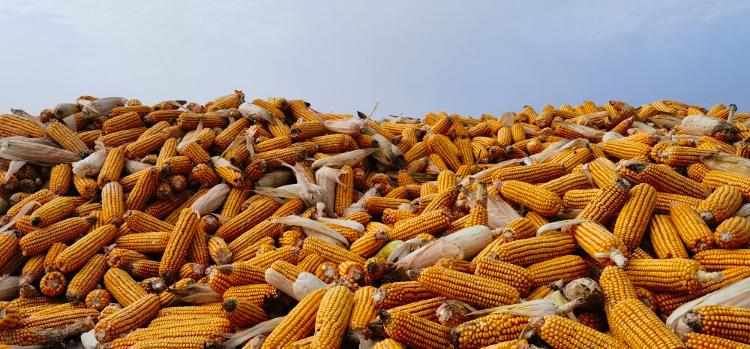 2023年山东省玉米机收减损技能大比武启动仪式现场,部分玉米已经收获等待脱粒。新华社记者 叶婧 摄