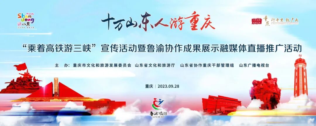 鲁网9月28日讯(记者 刘晓婧)为弘扬和传承沂蒙精神、红岩精神,同时向全网集中展示鲁渝两地在文旅、产业、劳务、消费等领域协作的诸多成果成效,9月28日上午,由重庆市文化和旅游发展委员会,山东省文化和旅游厅、山东省协作重庆干部管理组、山东广播电视台主办的十万山东人游重庆——“乘着高铁游三峡”从沂蒙精神到红岩精神文旅资源推广活动,暨鲁渝协作成果展示大型主题融媒体直播推广活动圆满举办。