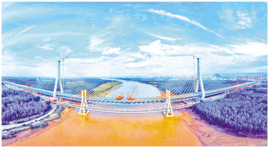 9月28日,G104京岚线济南黄河公路大桥主桥顺利合龙,这是我省首条穿越黄河的轨道交通线路。(□记者刘飞跃报道)