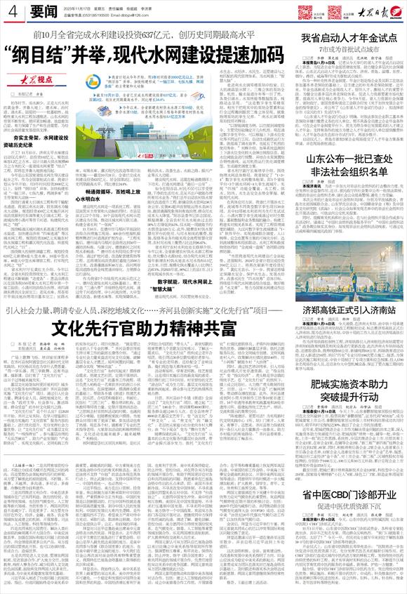 省水利厅厅长黄红光介绍,今年以来,全省水利投资持续发力,重大水利工程建设不断刷新“进度条”:恩县洼滞洪区在国务院150项重大水利工程中第一个竣工验收;小清河防洪综合治理、南四湖湖东滞洪区全面完工;老岚水库、邳苍郯片平原洼地治理项目基本完工;官路水库、双堠水库、灌区现代化改造等项目加快实施……截至10月31日,全省已完成水利建设投资637亿元,居全国第2位,创历史同期最高水平,同比增长34.4%。