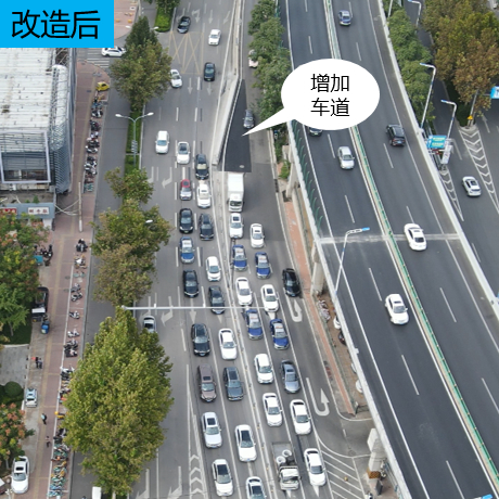 小清河北路济泺路路口改造后,高峰期南、北口左转排队长度减少约50米,左转通行效率提升约15%。