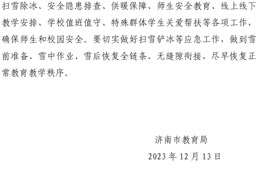 此次强冷空气过程降温幅度大,有寒潮灾害中度风险,对交通和人体健康等有不利影响。为切实做好德州市教育系统寒潮雨雪天气防范应对工作,现就有关事项紧急通知。其中,各级各类学校可根据当地天气情况动态,调整学生上下学时间,合理安排体育课及课间、课外、升国旗、课后延时服务等活动,必要时可暂停户外活动,开展线上教学工作。各县(市、区)要加强与气象部门信息共享和会商研判,及时制定针对性防范应对措施,需要停课的,向上级主管部门进行报备。学校食堂要做好粮、油、肉、蛋、菜、奶等物资储备工作,午间配餐学校加强供餐调度,保证学生按时吃上热餐。