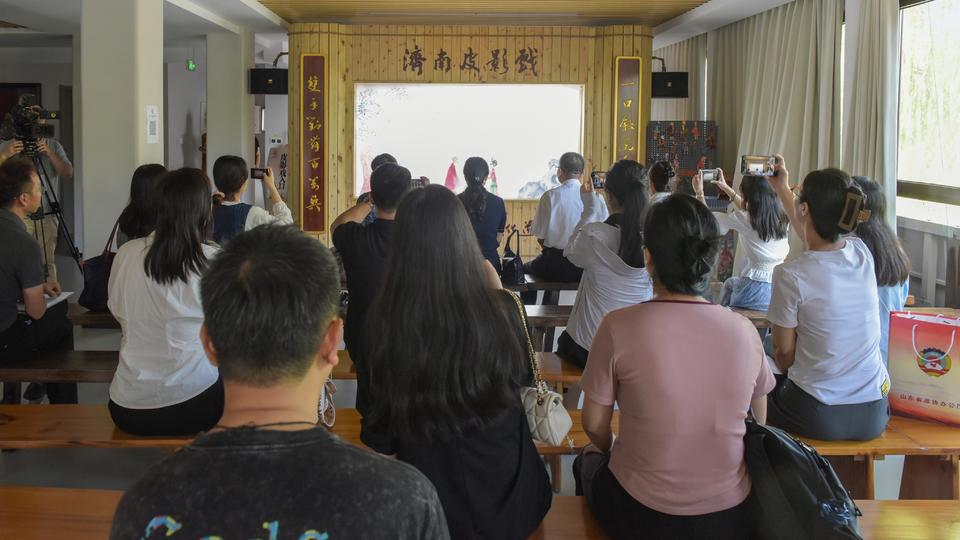 9月3日上午,“文化‘两创’·政协在线”网络主题宣传活动采访团走进济南百花洲历史文化街区,观看皮影作品。