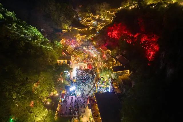 这是红叶柿岩夜间的一幕幕。近年来,山东以文塑旅、以旅彰文,不断探索丰富旅游新场景、新业态,文旅市场持续升温。