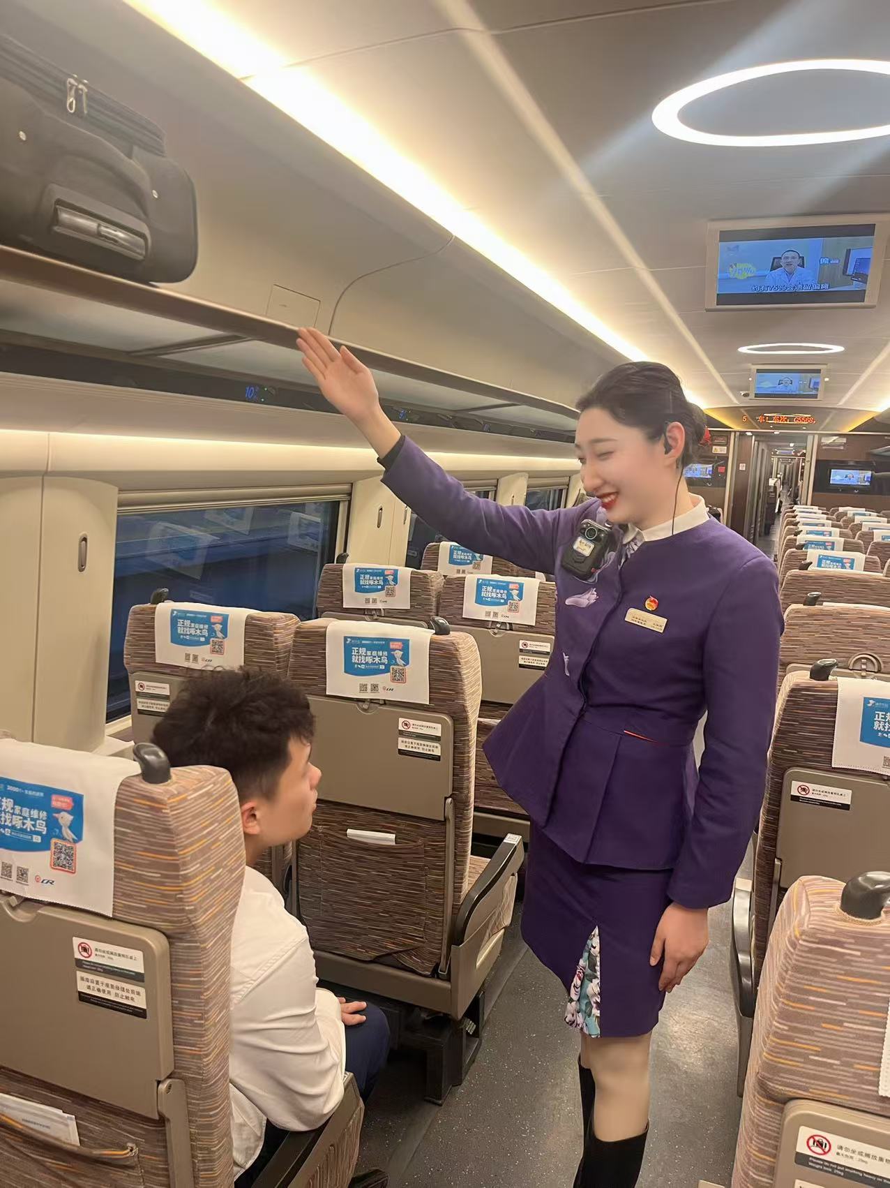 今年刚刚走上工作岗位的殷绎茹是03年生人,她直言,乘务工作与课本上学习的内容不太一样,与人打交道除了有足够的业务能力积累,更需要有“同理心”。