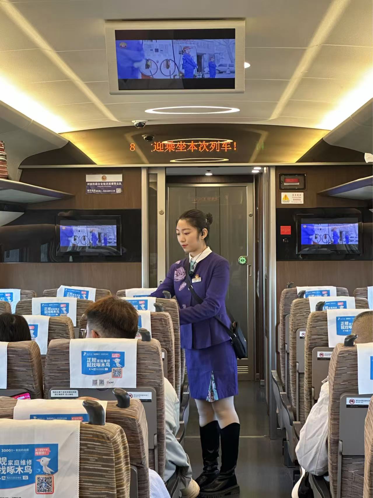 列车值班员王佳莉今年23岁,除了负责自己值乘的车厢,还兼顾着协助车长日常工作、处理突发事件等任务。随着乘务经验的积累,她练就了一双“火眼金睛”,在服务旅客中也有着自己独特的随机应变。
