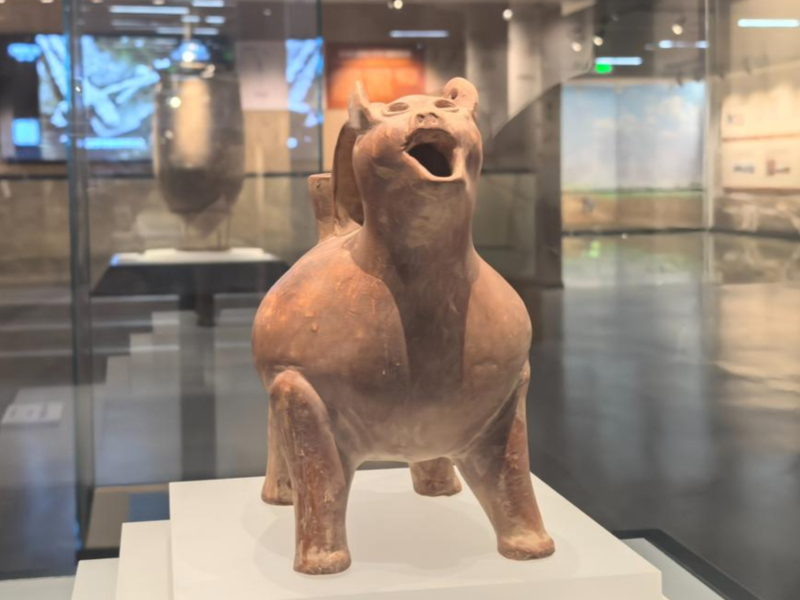 大汶口遗址出土的器物,表现出大汶口先民们高超的制陶水平。付秀丽介绍,大汶口遗址中出土的红陶兽形壶,就是一头猪的形象,它是一个酒器,既是实用器,又不失艺术情趣,是大汶口文化独有的器型。