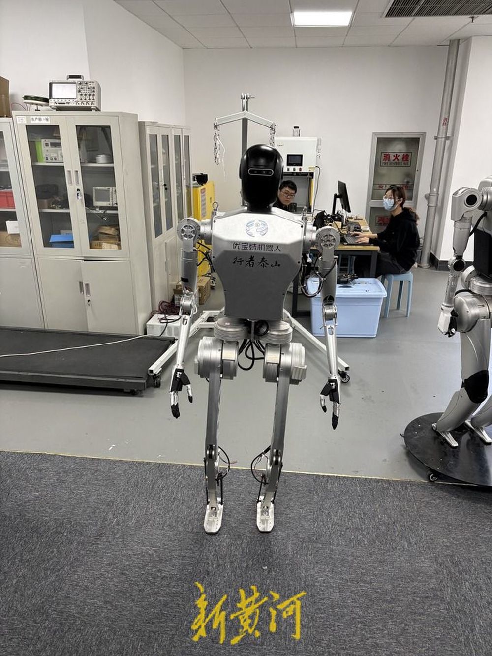 “这是我们第二代人形机器人‘行者泰山R2’。”山东优宝特智能机器人有限公司副总经理周彤介绍,一年前,公司用两个月完成山东首台人形机器人从立项到“诞生”全过程,刷新了人形机器人开发的行业速度。一年过去,“行者泰山”已升级到二代,部署了DeepSeek大模型,拥有更聪明的“大脑”,在人机交互、视觉感知等方面都更先进。