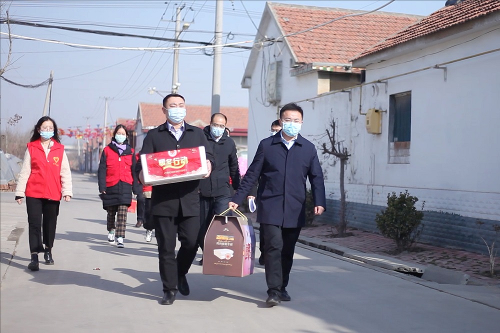 (图)广饶县蒲公英爱心助学协会组织开展”暖冬行动“,朱强与志愿者们为困难儿童家庭送去生活用品。