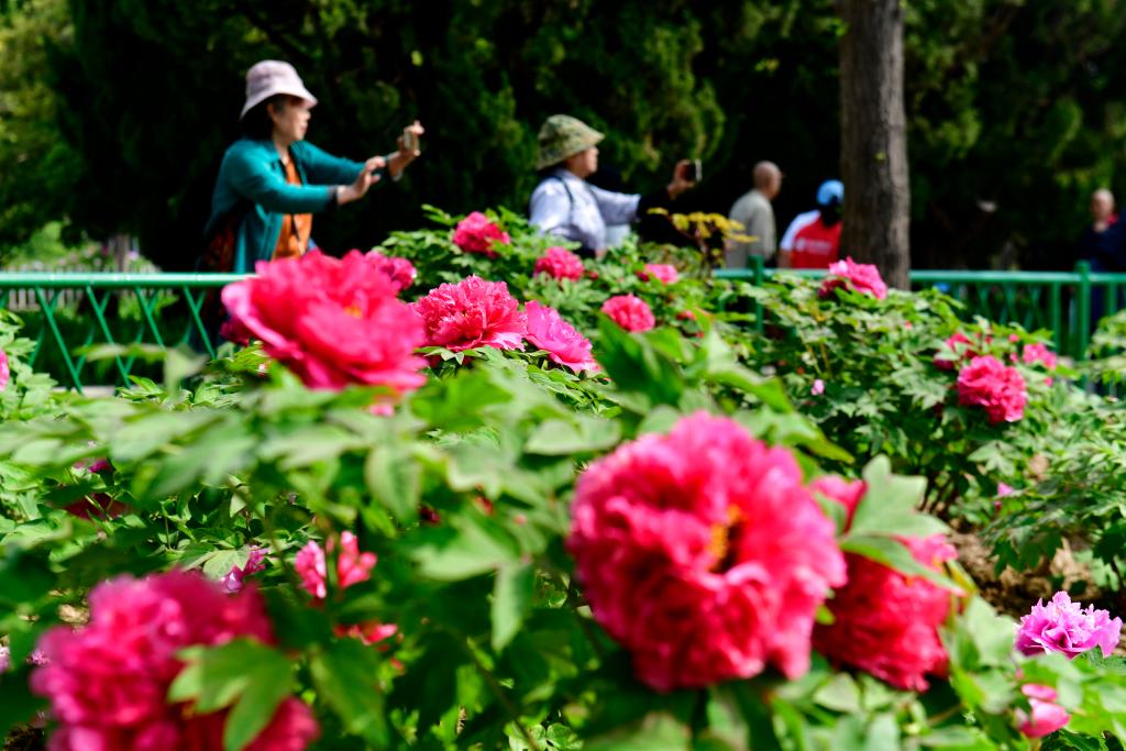 在曹州牡丹园,牡丹竞相绽放,身着牡丹汉服的姑娘们提着绘有工笔牡丹的团扇,化身“牡丹仙子”巡游花海、打卡拍照。“这里牡丹品种特别多,争奇斗艳,心情都被感染了。我们是专门趁花期来旅游的,真是不虚此行。”来自山东泰安的游客万春莲说。