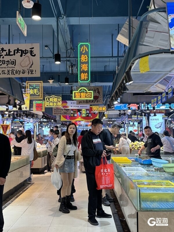 喝啤酒、吃海鲜,是青岛市民的夜生活习惯。随着天气逐渐转暖,夜幕低垂,华灯初上,市南区的夜生活才刚刚开始。在浮山所市集,海鲜摊位前人声鼎沸,新鲜捕捞的海肠、海蛎子、皮皮虾等摆满了摊位,前来选购的市民和游客络绎不绝。“海鲜现买现加工,配上青岛啤酒,非常有特色。”来自莱芜的王经纬一家人表示。