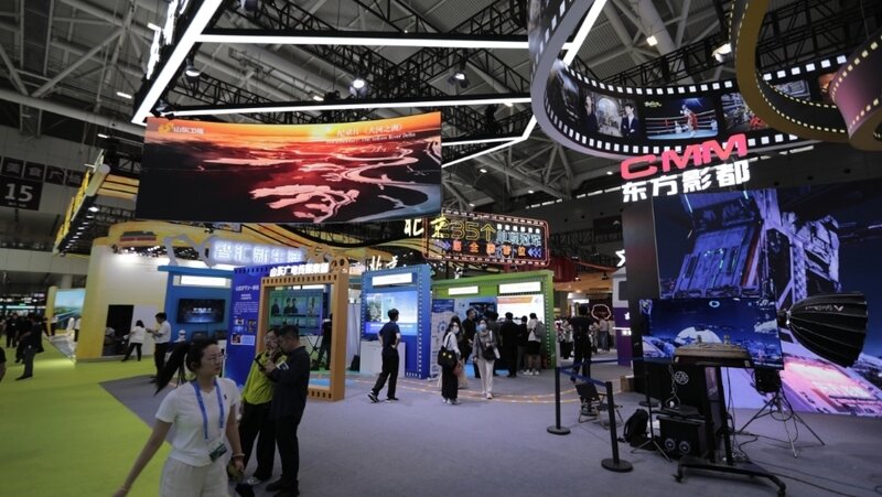 步入山东展区,螺旋胶片与弧形巨幕搭建的东方影都“造梦空间”扑面而来。“到山东展区,拍电影大片”“我在文博会山东展区拍大片”……展区内的虚拟影棚互动体验区人气十足,不少观众走进化身“电影造梦场”的山东展区,沉浸式体验电影拍摄的全流程,全方位展现山东影视产业及电影工业化的硬核力量。