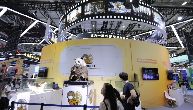 在数字与创意的加持下,展区内爆款文创组团亮相,一展“文化+科技”的融合成果。2024央视春晚开场歌舞《鼓舞龙腾》中,菏泽市大路文化创意有限公司(熊猫工厂)原创生产的熊猫玩偶“花花”和苏有朋、胡歌等明星一起给观众拜年。这一来自山东省菏泽市熊猫工厂的玩偶亮相展会现场,便受到观众的喜爱。