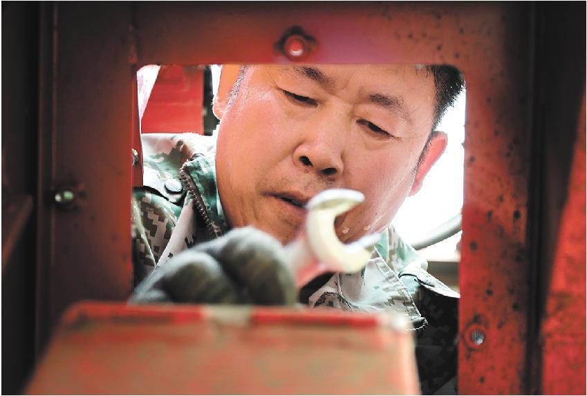 赵启玉养了三台收割机,他不仅会开,还会维修。