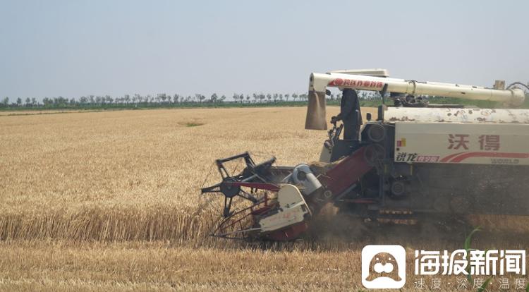 东营市垦利区永安镇盐碱地高产攻关田迎来麦收季。