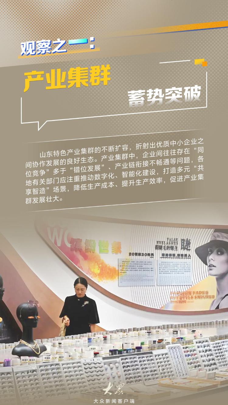 山东特色产业集群的不断扩容,折射出优质中小企业之间协作发展的良好生态。产业集群中,企业间往往存在“同位竞争”多于“错位发展”、产业链衔接不畅通等问题,各地有关部门应注重推动数字化、智能化建设,打造多元“共享智造”场景,降低生产成本、提升生产效率,促进产业集群发展壮大。