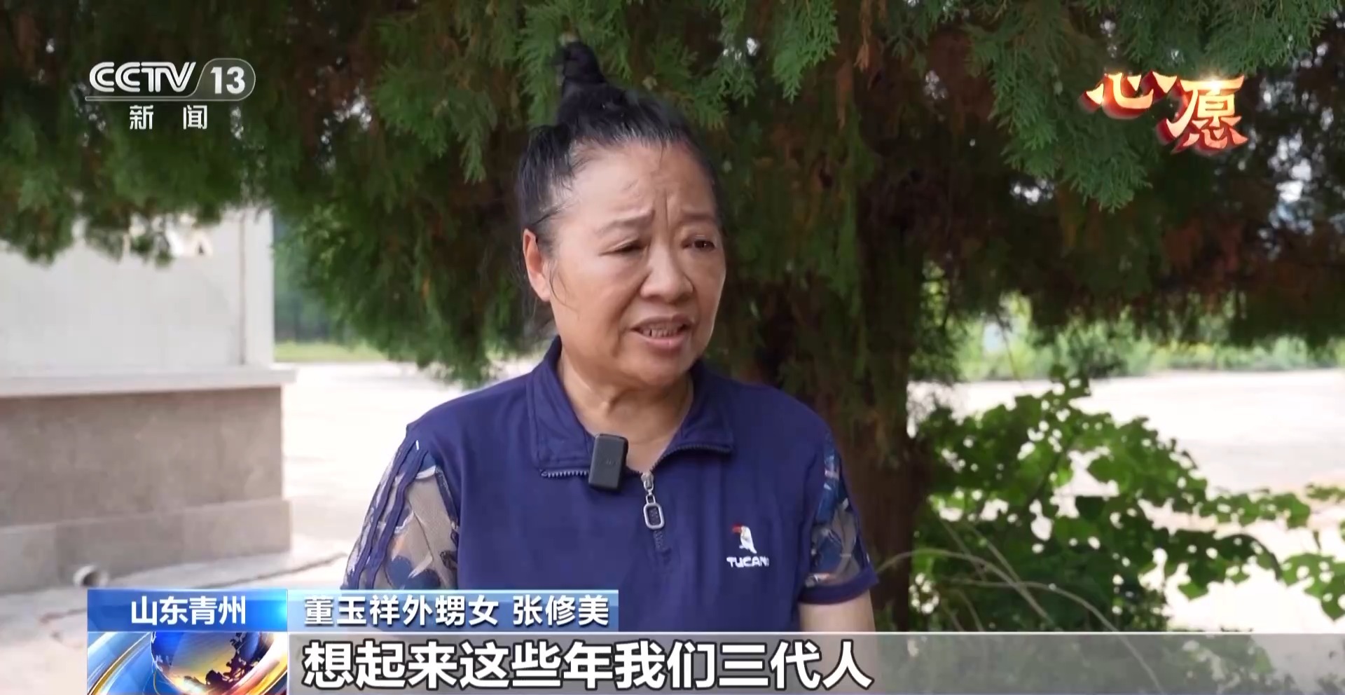 董玉祥外甥女 张修美:非常激动,热泪盈眶。想起来这些年我们三代人,整整找了半个世纪多,一次次找,一次次失败,一次次找。也感谢好心人帮我们找到了。