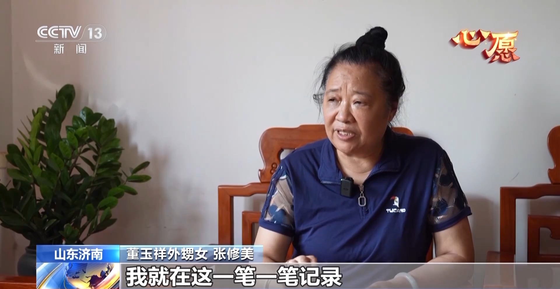 董玉祥外甥女 张修美:最早我在济南打电话,问民政局,他们告诉我,我就在这一笔一笔地记录,是中国人民解放军第三野战军九兵团警卫团副班长,后来就说他可能在徐州烈士陵园。