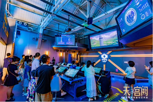 展览特别注重沉浸式互动体验,多个展区开创国内先河:“天穹之枢”卫星指挥控制中心是全国首个真实还原火箭发射全流程的沉浸式剧目;“星际飞行与探险影院”采用全国首发的720°环幕沉浸式交互技术,多感官体验第一视角参与任务;“星河居所”天宫空间站以1:10高精度还原空间站外貌;“广寒宫”月球基地计划展出1:3嫦娥六号探测器模型。