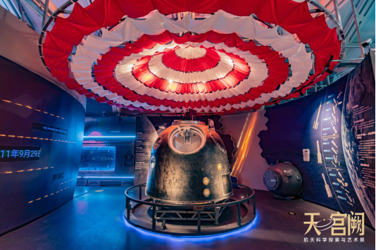 天・宫阙航天科学探索与艺术展共设14个独具特色的主题展区:航天发展历程展区多个珍贵航天文物、科研手稿首次亮相;“第一宇宙速度与温度展区”展出首个亮相山东的真实火箭残骸;“寰宇归航”展区呈现1:1高精度复原返回舱和真实火星探测器降落伞材料;“苍穹霓裳”宇航服之家展出高精度1:1复刻的飞天二代舱外服、舱内服。
