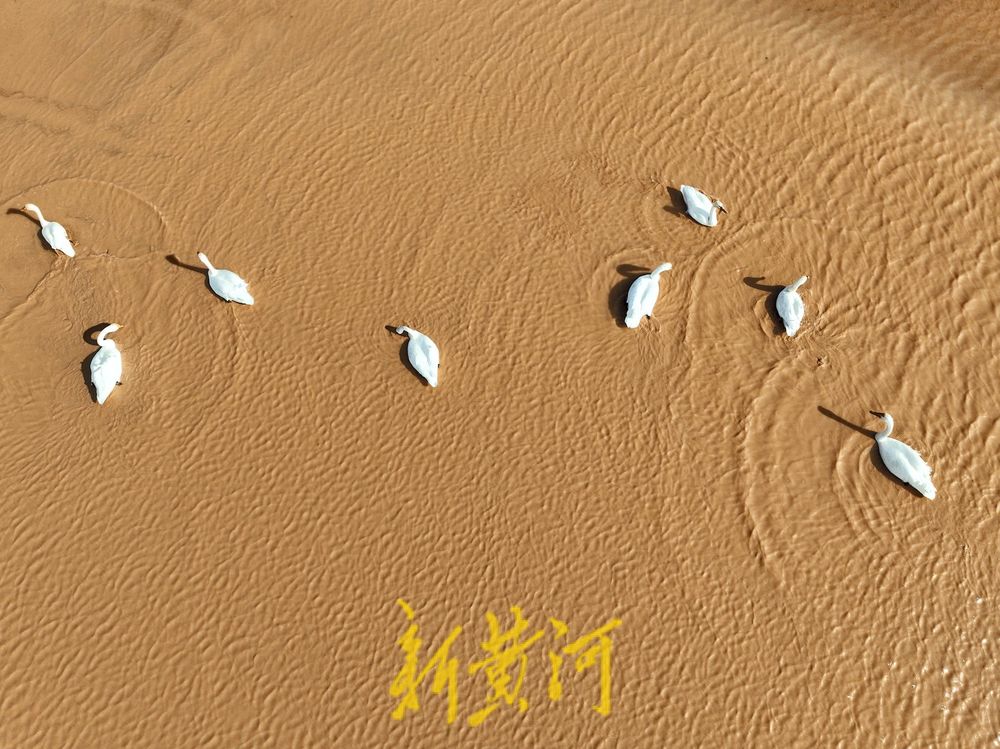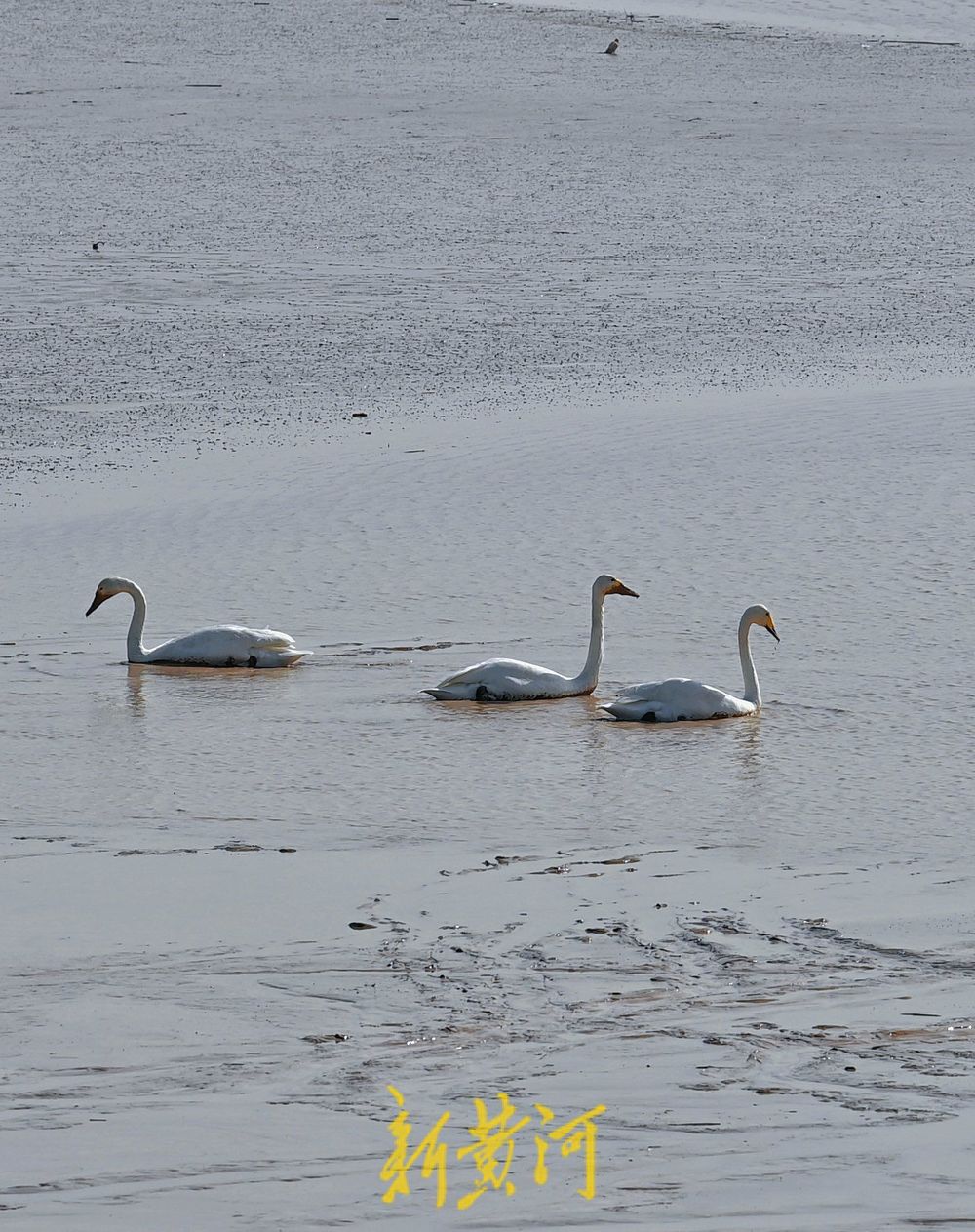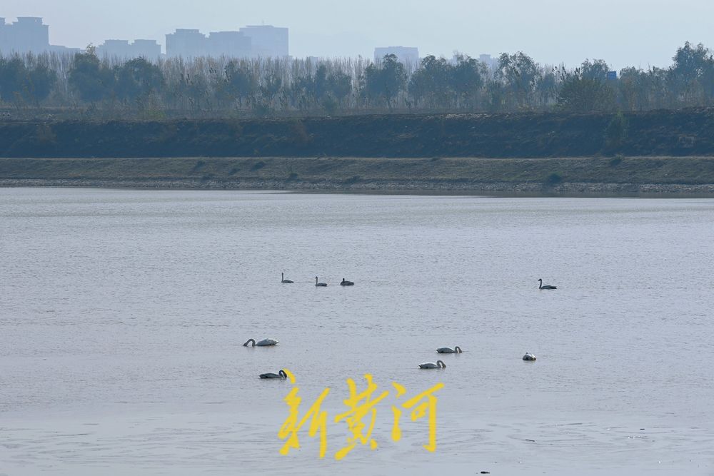 鹊山水库沉砂池是引黄河水进入鹊山水库前的缓流之地,泥沙在这里沉降后,清流入库,作为饮用水水源地,受到严格保护,优越的自然环境,让大天鹅情有独钟。