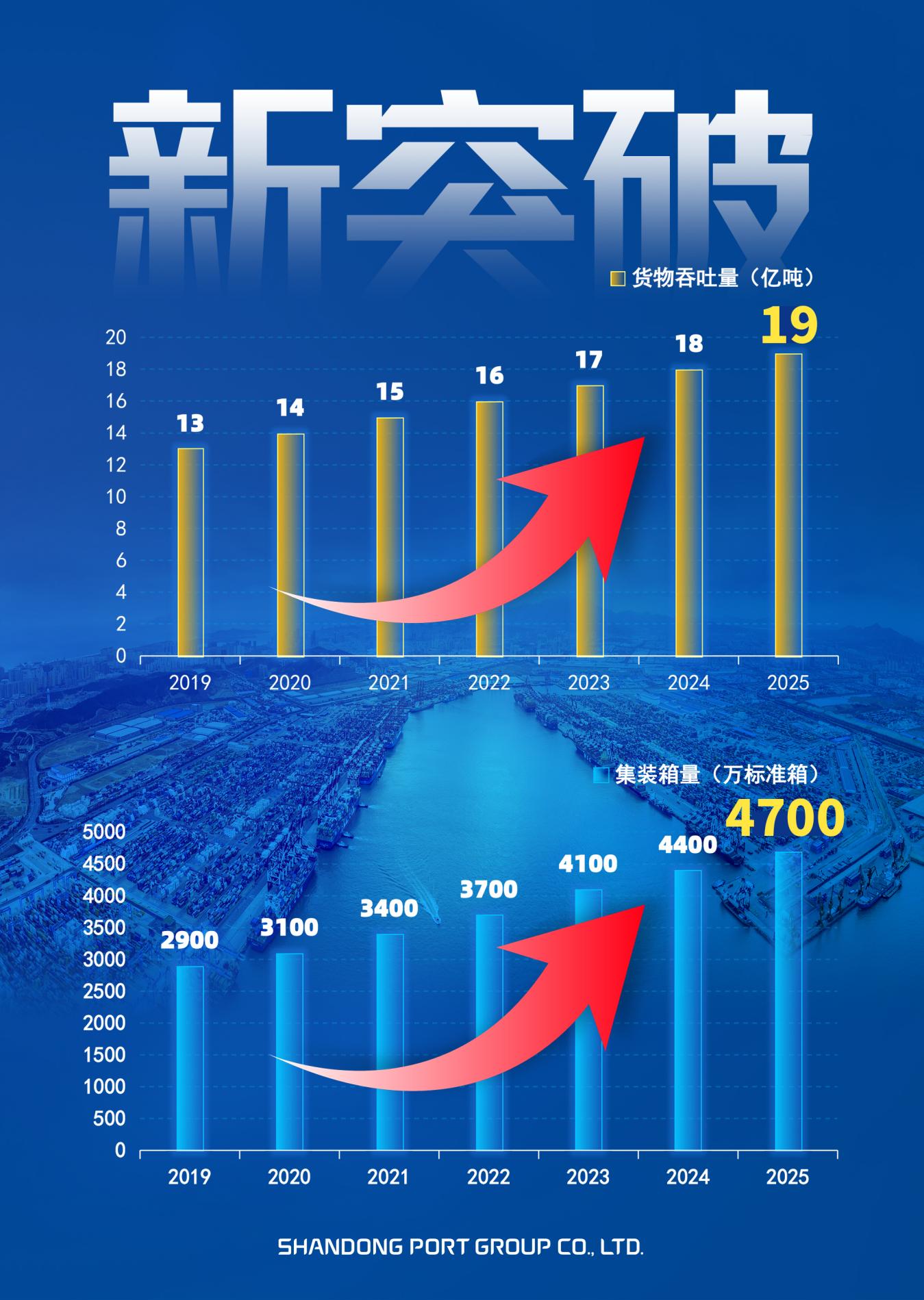 当货物吞吐量超越19亿吨、集装箱量超越4700万标箱,稳居全球第一位、第二位的捷报传来,山东港口再次用震撼全球航运业的硬核数据,书写了中国乃至全球港航界高质量发展的传奇。