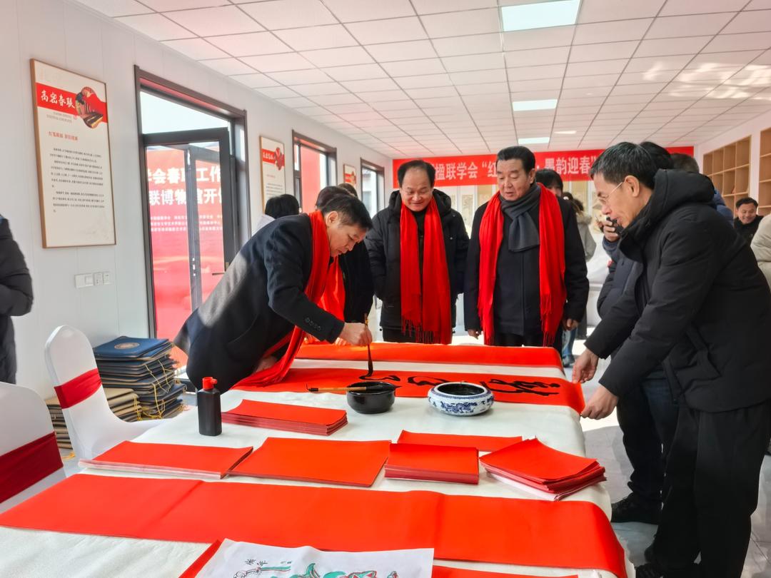 1月24日,中国楹联学会春联工作委员会揭牌暨春联博物馆开馆仪式在“中国楹联文化城市”潍坊高密市举行。中国楹联学会相关负责人、国内知名专家学者及各地文化界代表齐聚高密,共同见证这一文化盛事。仪式现场,多位书法名家挥毫泼墨,为市民书写新春祝福,将文化传承的温度融入笔墨之间。
