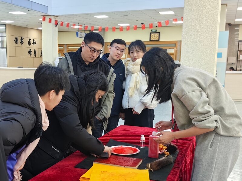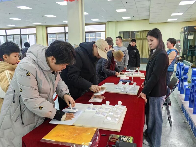 活动现场,三大特色环节深受欢迎。“印象鲁图”腊八集章打卡环节中,定制集章卡片成为“年味信物”。套章借鉴木版年画技艺,将清代馆藏《十美图》卡通化,融入节日与年俗元素,让读者在盖章中感受传统与现代的碰撞。雕版印刷体验区前,读者在馆员指导下亲手拓印财神图,近距离触摸这项人类非物质文化遗产的千年智慧。手工扭扭棒烟花制作环节则充满创意,亲子协作打造“永不凋零的烟花”,在欢声笑语中提前感受过年氛围。