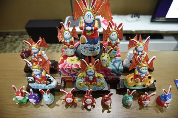 “兔子王”是济南泥塑的传统代表,济南泥塑种类众多,主要为神话人物、历史人物及民间泥玩具等。历史文化人物形象会从《水浒》《三国志》《红楼梦》等历史名著中选材,创造出大型系列彩塑。