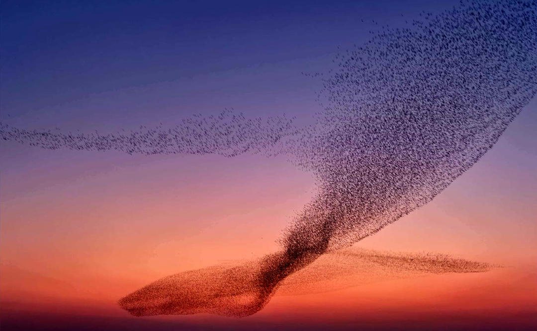 (鸟浪在夕阳下的壮观景象 郭雨晴摄)