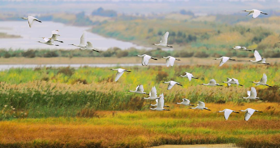 看震天撼地的鸟浪,感受万鸟翔集、如鲲展翅的壮阔;看黄蓝交汇的奇景,领略九曲黄河奔涌入海的豪迈;看芦花飞雪、红毯迎宾,沉浸式品味这份独有的生态诗意。