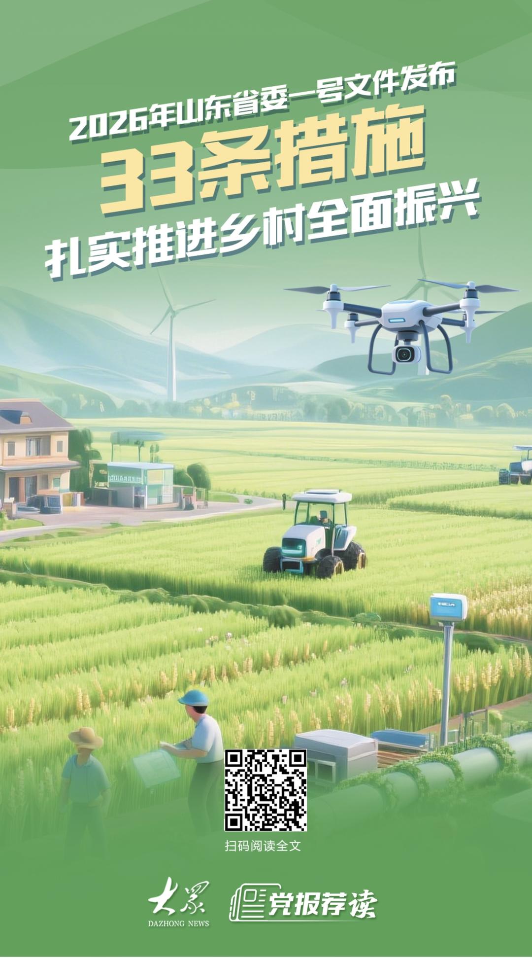 2026年山东省委一号文件发布,33条措施扎实推进乡村全面振兴