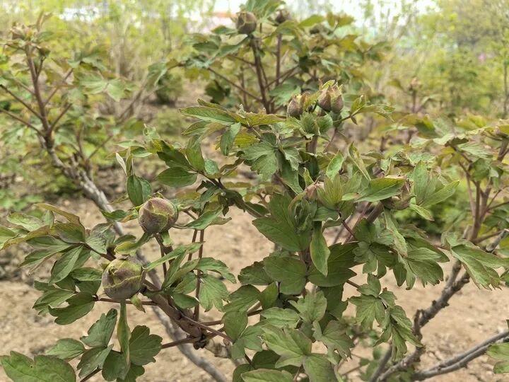 日前,在位于菏泽鲁西新区陈集镇的菏泽牡丹园内,两株黑色系珍品牡丹“墨润绝伦”出现奇景,一株长出3枝并蒂牡丹,一株长出6枝并蒂牡丹,均含苞待放,静待游人。