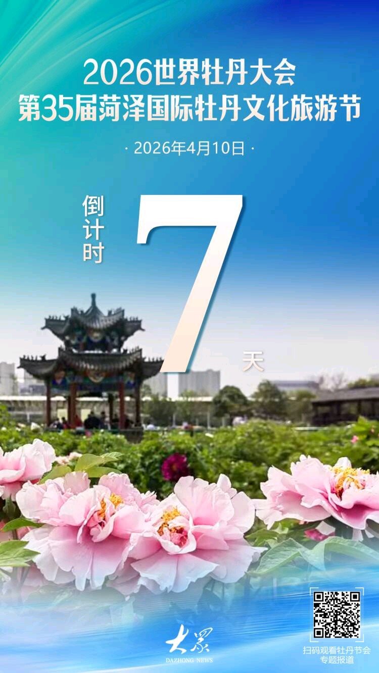 4月10日,万众瞩目的“2026世界牡丹大会 第35届菏泽国际牡丹文化旅游节”(即2026菏泽牡丹节会)开幕式,将在菏泽会盟台举办。 今天距离菏泽牡丹节会开幕还有7天——