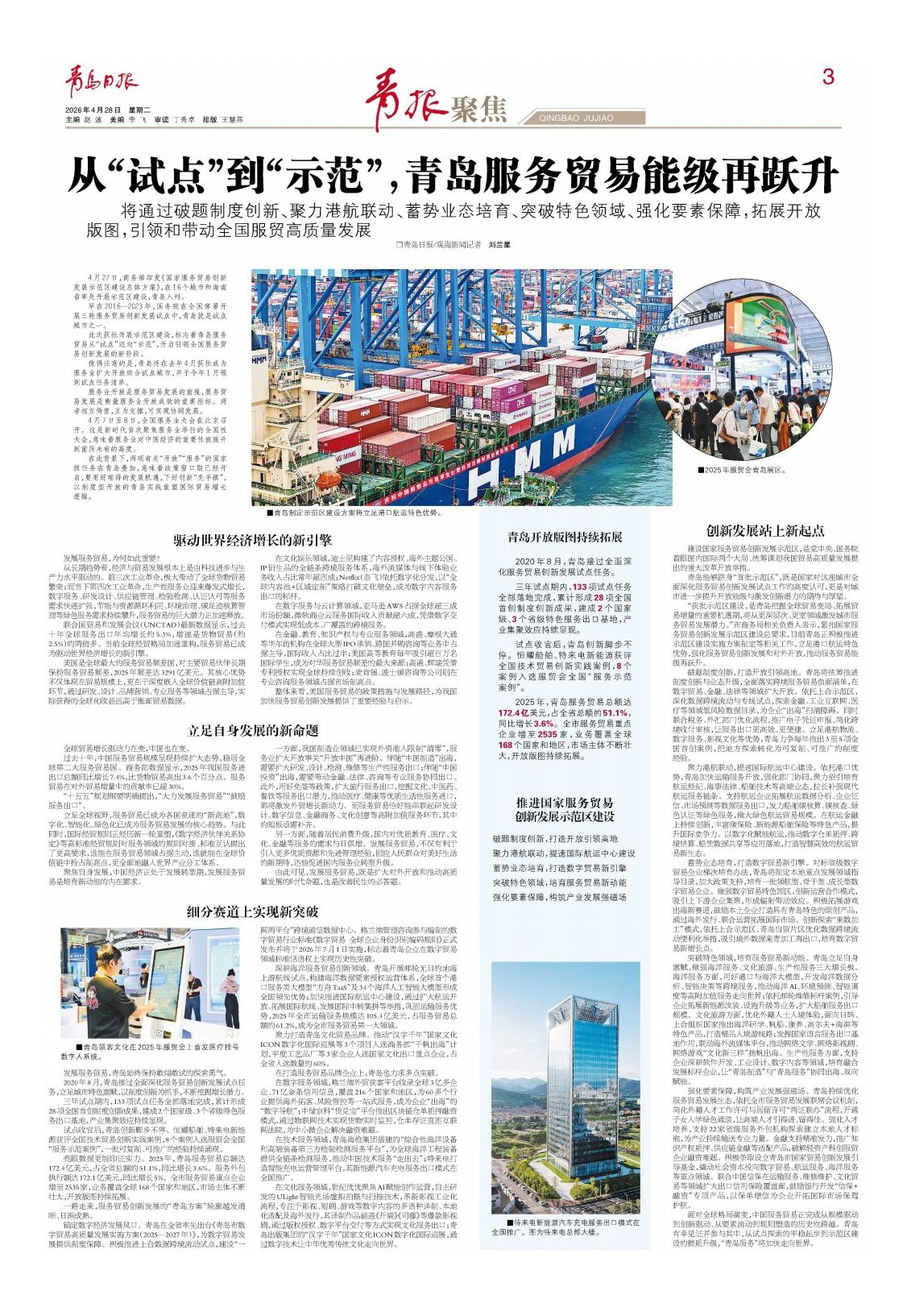 青岛能够跻身“首批示范区”,既是国家对这座城市全面深化服务贸易创新发展试点工作的高度认可,更是对城市进一步提升开放能级与激发创新潜力的期待与厚望。