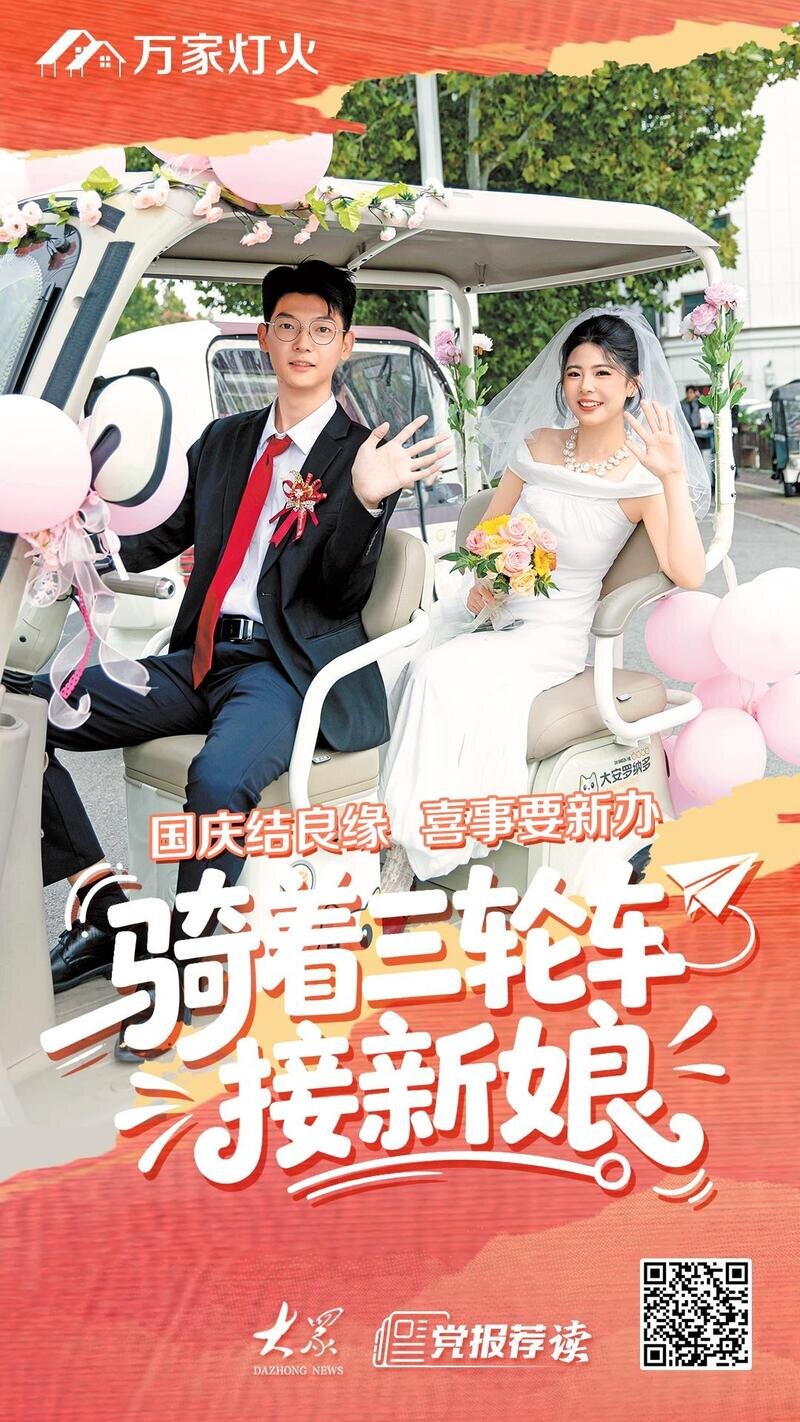 国庆结良缘,喜事要新办!济宁小伙骑着三轮车接新娘