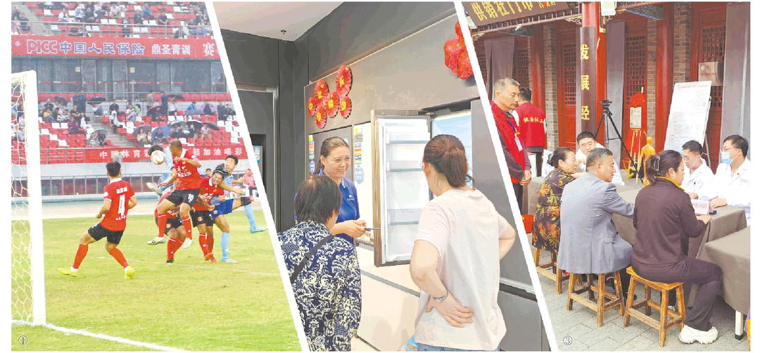 图①:齐鲁超赛枣庄站揭幕战。图②:日照市民在凌云家电城选购家电。图③:中医在无棣古城免费问诊。 一张球票串起城市漫游 10月1日