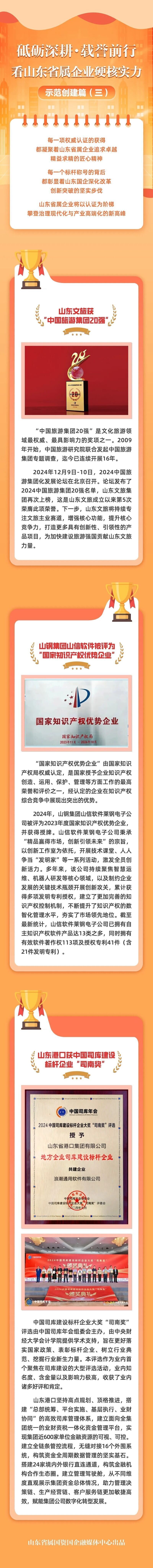 聚焦山东省属企业在工程创优、生态保护、乡村振兴、科技创新等领域的国家级荣誉、招牌,彰显山东省属企业“敢为人先、勇立潮头”的使命担当。
