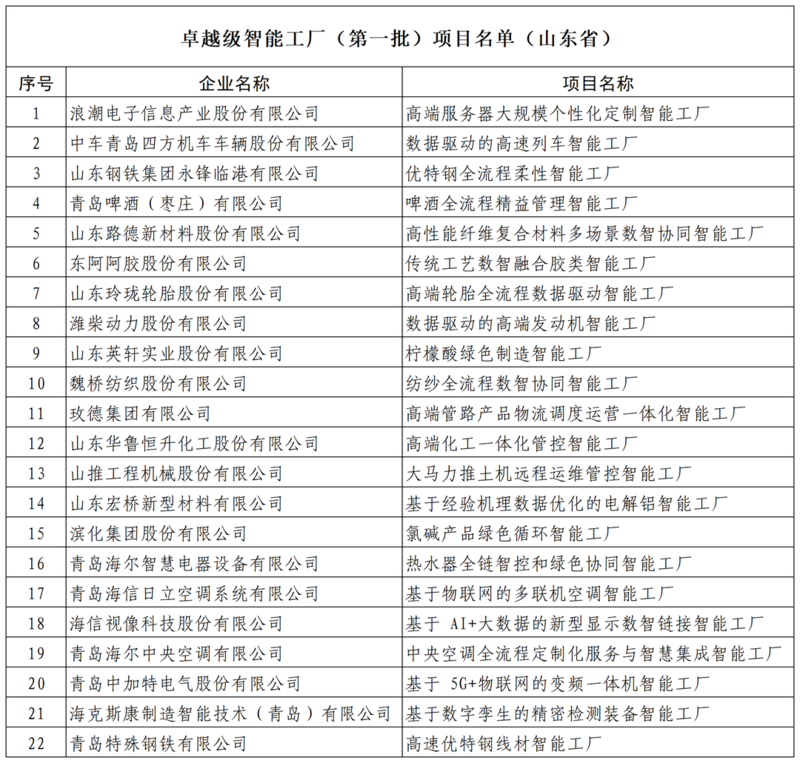 山东建成国家卓越级智能工厂49家,数量居全国第二